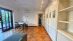 ampio soggiorno con divano letto matrimoniale di 17cm, tavolo allungabile, armadio a muro e librerie