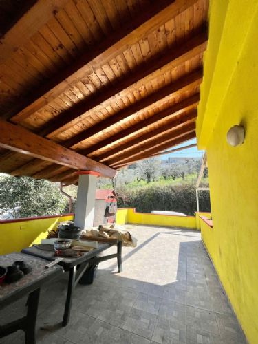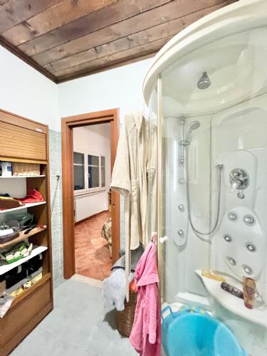 Al piano principale, la casa si presenta con una zona giorno che accoglie gli ospiti in un ampio salone, arricchito da un bellissimo termocamino che dona calore e accoglienza. La porta vetrata che si apre sulla veranda esterna, permette di godere della bellezza dei paesaggi circostanti e di vivere la casa anche all’aperto, rendendo gli spazi ancora più luminosi e ariosi. La cucina, spaziosa e completamente abitabile, è perfetta per chi ama cucinare e vivere la casa con autenticità.