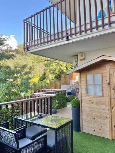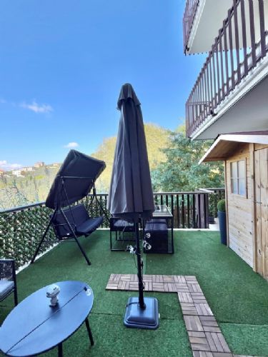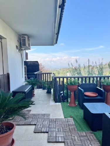 Completamente rifinito con materiali di pregio, è dotato di serrande elettriche, riscaldamento a pavimento, disposizione moderna e classe energetica A+, perfetta per chi cerca comfort, risparmio ed efficienza. L’appartamento si apre su un ampio ingresso e una cucina moderna recentemente ristrutturata, con accesso diretto a un terrazzo esclusivo,dove è presente anche una comoda casetta in legno ideale per riporre utensili e oggetti da esterno. . La zona notte è composta da due spaziose camere da letto e un bagno finestrato con ottime rifiniture e box doccia. La parte esterna è arricchita da un terrazzo panoramico accessibile dalla cucina, che si estende intorno all’immobile e include un piccolo giardino. In fondo alla proprietà troviamo una comoda dependance, composta da due ambienti: una stanza con cucina e un ulteriore locale. Sul lato destro, il terrazzo prosegue offrendo accesso esterno anche alle camere e al bagno.
