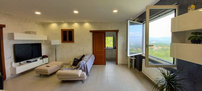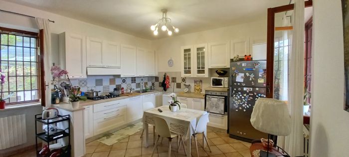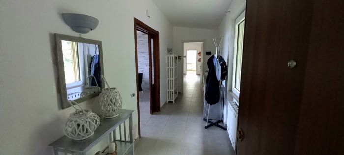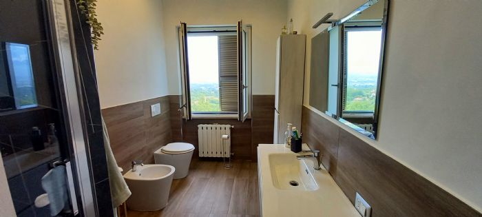 Il piano primo è composto da ingresso, ampio soggiorno con vista panoramica sulla valle e terreno di proprietà, cucina, ripostiglio, disimpegno,bagno con antibagno con armadio a muro, doppia cameretta e camera da letto.