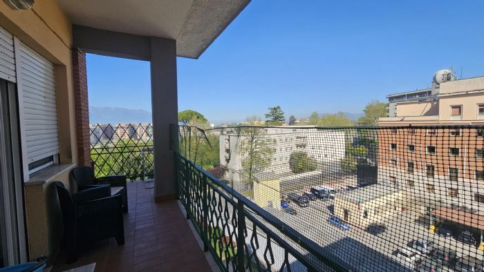 Nel cuore pulsante di Frosinone, nella prestigiosa e centralissima Viale Mazzini, proponiamo in vendita un appartamento di ampia metratura situato al quinto piano di una signorile palazzina in cortina, all'interno di un contesto privato chiuso da cancello automatico. L’immobile, che si estende su circa 100 mq, si distingue per la razionale distribuzione degli spazi e l’eccezionale luminosità. La zona giorno è composta da un accogliente ingresso con ampio disimpegno, una cucina abitabile e un salone doppio ideale per momenti di convivialità. La zona notte offre due spaziose camere da letto matrimoniali, un bagno funzionale e un comodo ripostiglio. Punto di forza della proprietà è il balcone perimetrale che abbraccia l’appartamento, offrendo una splendida vista panoramica sulla città. Completano la proprietà: